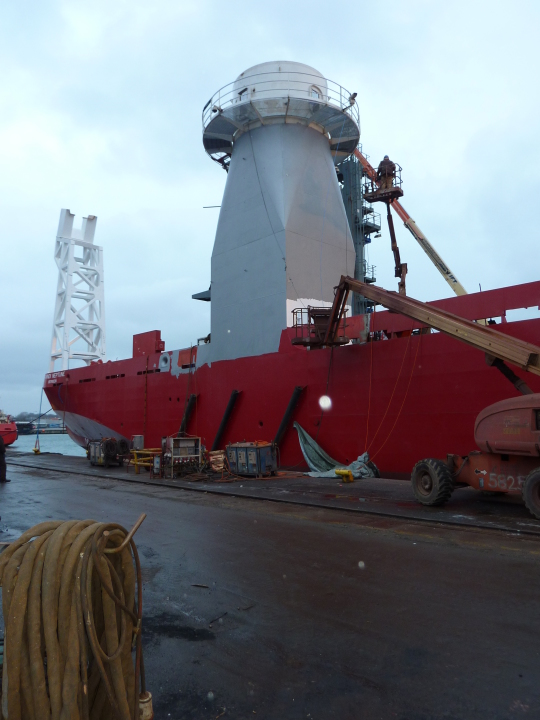 The rebuilding was carried out without any problems, and the vessel was ready to be launched already 3 weeks after its arrival at the yard. A close and good collaboration between the owner DOF, Marin Teknikk, Orskov and DNV have been vital in this progress.