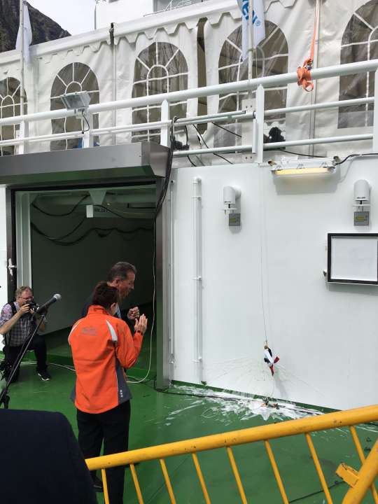 More than 100 guests were invited to follow the handover ceremony which took place in Geirangerfjorden, Norway. Both the owners, representatives from the yard, and representatives from the sub-suppliers was present among others.