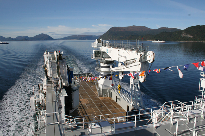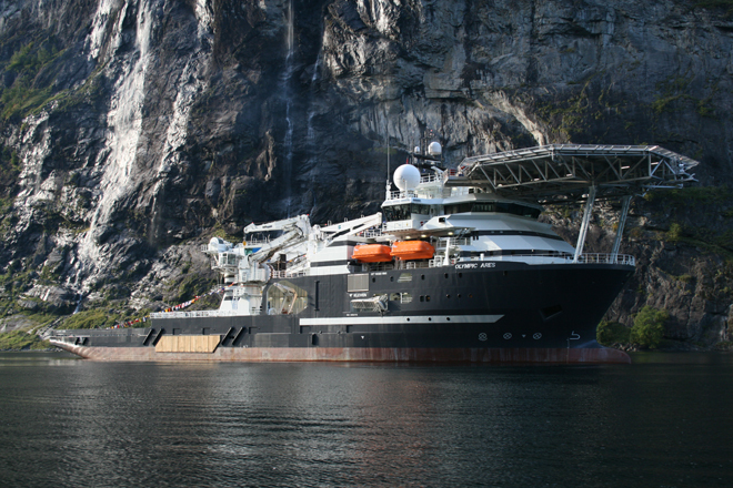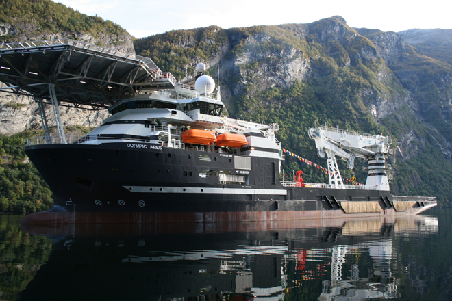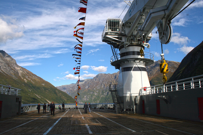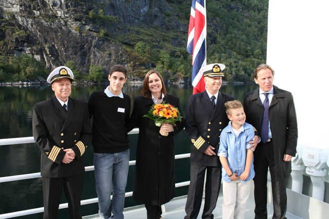 In beautiful autumn weather, the MT6022 MkII Olympic Ares headed for its naming ceremony in Geiranger, Norway. The Geiranger Fjord really showed up from its best side, and gave the ceremony a wonderful setting. Around 100 guests joined the event, where godmother Carolina Pérrisé from Olympics’ office in Brazil gave the name “Olympic Ares”.