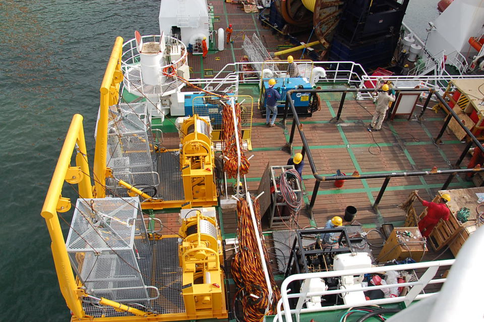 The vessels are built with a reinforced moon-pool for construction projects, in addition to two moon-pools for the diving system. The MT6022 XL DSCV design is equipped with an integrated “state-of-the-art 18 man twin bell Saturation” diving system, for diving down to a depth of 300 meters. Two hyperbaric lifeboats for safe evacuation of diving rob at a possible emergency is also present. The diving system has its own class notation SAT in DNV, where the ships are classified.